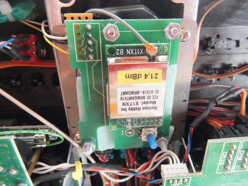 Da ich eine Funkfernsteuerung MC 22 mit 2,4 GHz Jeti Duplex- und 35 MHz-Modul habe, viele meiner Flieger aber mit Spektrumempfänger ausgestattet sind, habe ich mir mit Hilfe eines Vereinskollegen ein Spektrum DM12 Modul in die MC 22 eingebaut . Da wir keine Bauanleitung und auch nicht die Adapterplatine für die MC 22 hatten, mussten wir erst mal schauen wo und wie die Kabel angeschlossen werden. Dieses konnte jedoch nach wenigen Minuten Recherche und suche von Bilder im www. bewerkstelligt werden. Als wir dann wieder den Deckel auf die MC22 schrauben wollten stellten wir fest, dass der originale Stecker am Modul zu hoch war. Also Stecker ab und Kabel direkt an die Platine löten und siehe da, jetzt passte alles. Die neue Antenne wurde einfach in das Original 35 Mhz Öffnung der originalen Antenne eingebaut